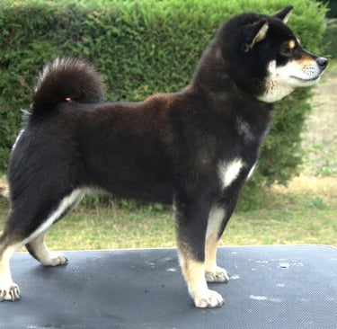 El manto negro profundo y bien pigmentado, acompañado de marcas fuego limpias y definidas y un Urajiro contrastante, genera una imagen impactante, con gran presencia visual tanto en estática como en pista.