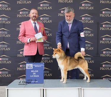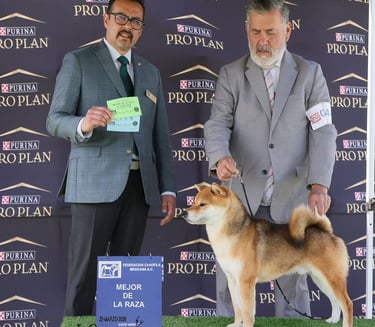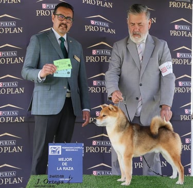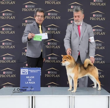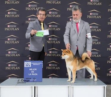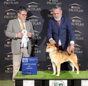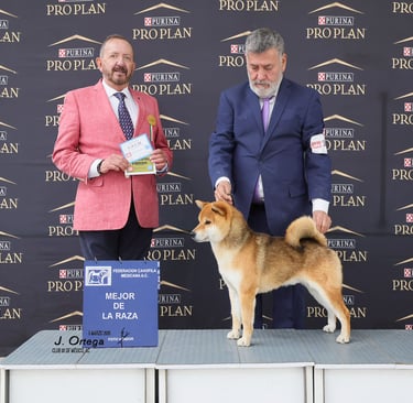 (Kan-i). Se muestra dócil ante el manejo pero con la reserva y confianza propias del Shiba Inu. Su estado físico general, energía y madurez lo sitúan en condiciones óptimas para funciones reproductivas, transmitiendo vitalidad y estabilidad funcional.