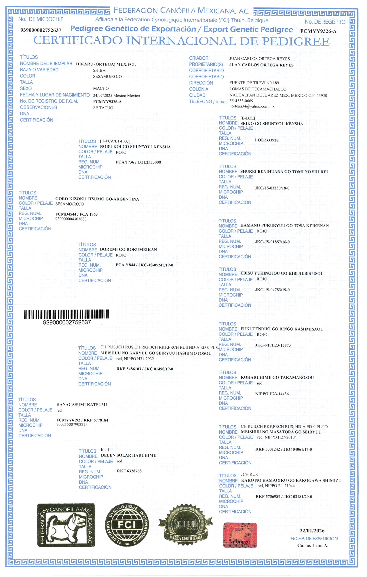 Aquí encontrarás todo sobre el cachorro Hikaru, su Pedigree y sus características únicas.