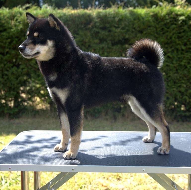 Kenshin Himura es un ejemplar que destaca por su actitud segura y presencia natural, mostrando un equilibrio sólido entre estructura, expresión y temperamento, propio de un Shiba bien definido.