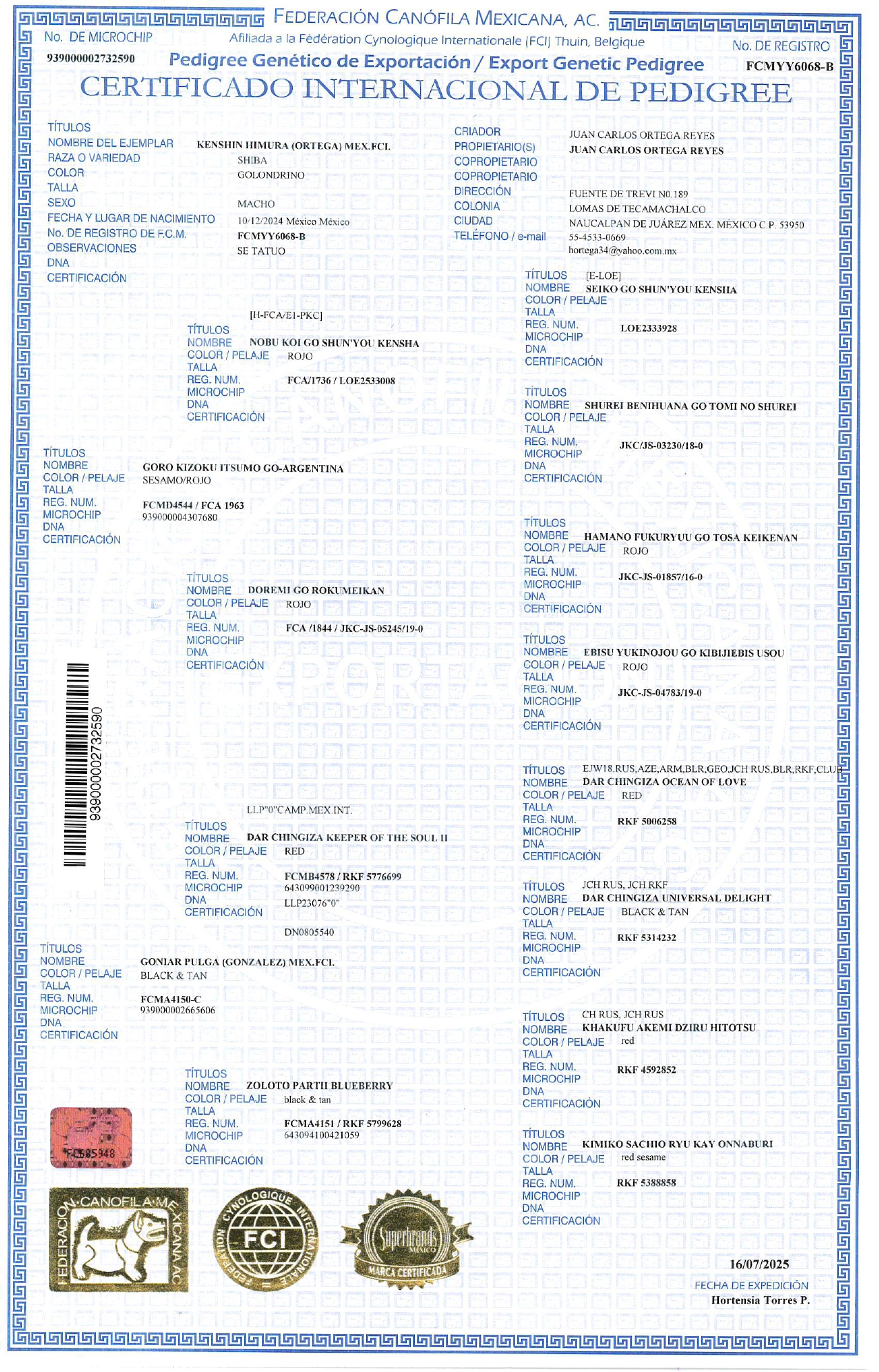 Aquí encontrarás todo sobre el cachorro Kenshin Himura, su Pedigree y sus características únicas.