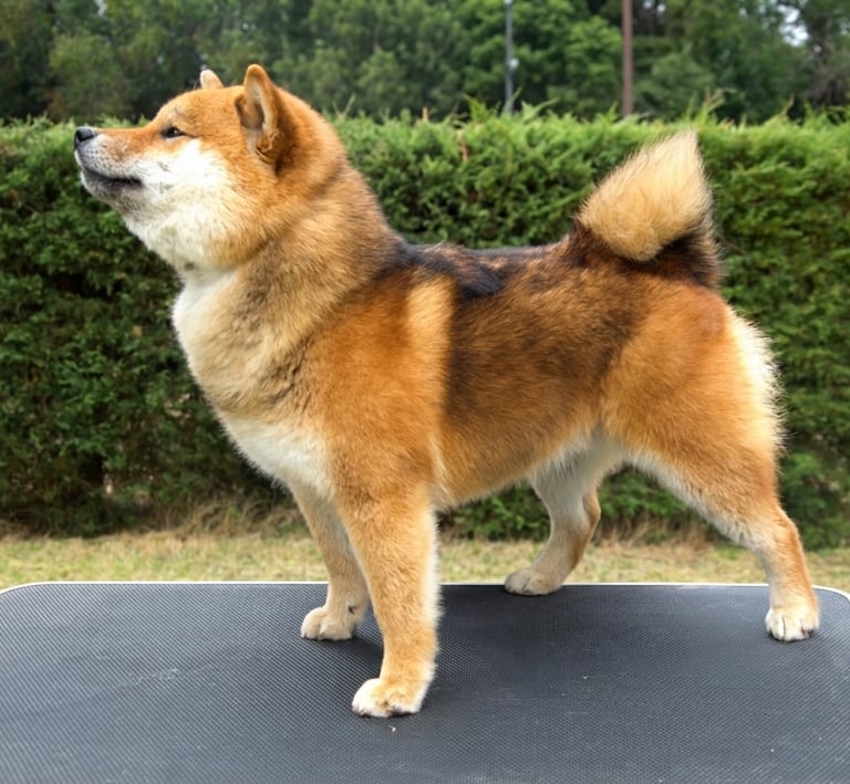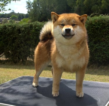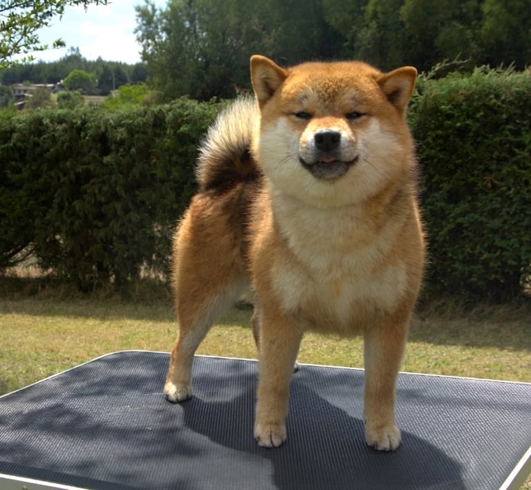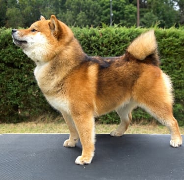 Ren Sukoshi es un ejemplar que impone por su presencia firme y expresión segura, mostrando un equilibrio muy bien definido entre estructura, tipicidad y carácter, acorde a un Shiba Inu de alta calidad.