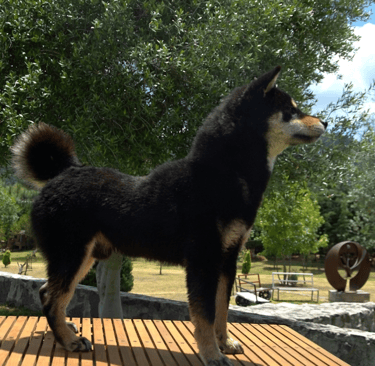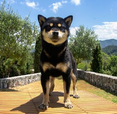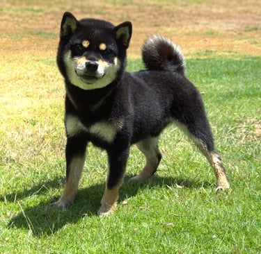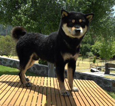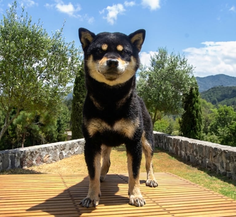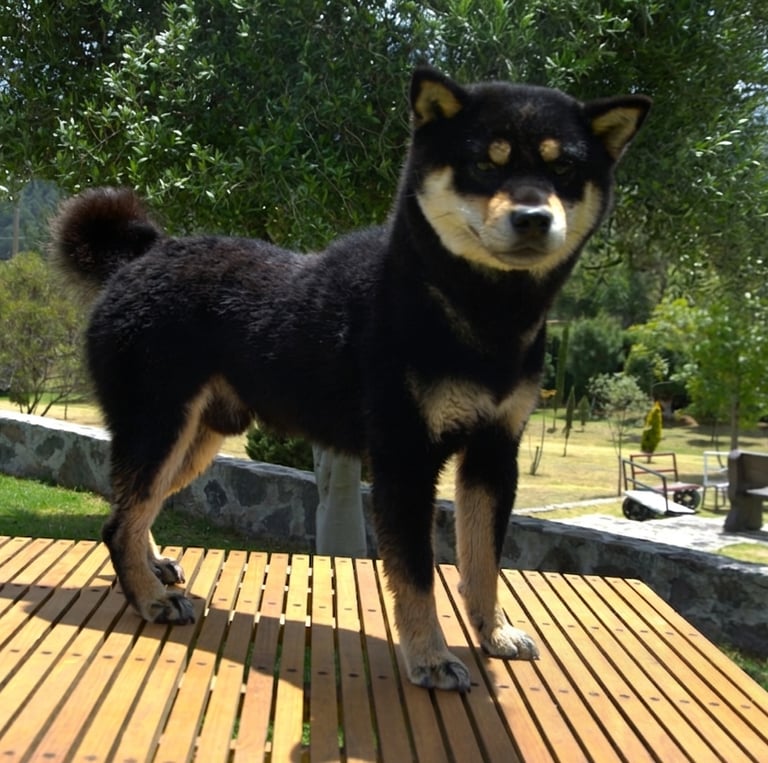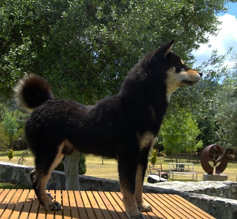 Se trata de un ejemplar con temperamento firme, seguro y confiado, reflejando el carácter independiente y alerta característico del Shiba.