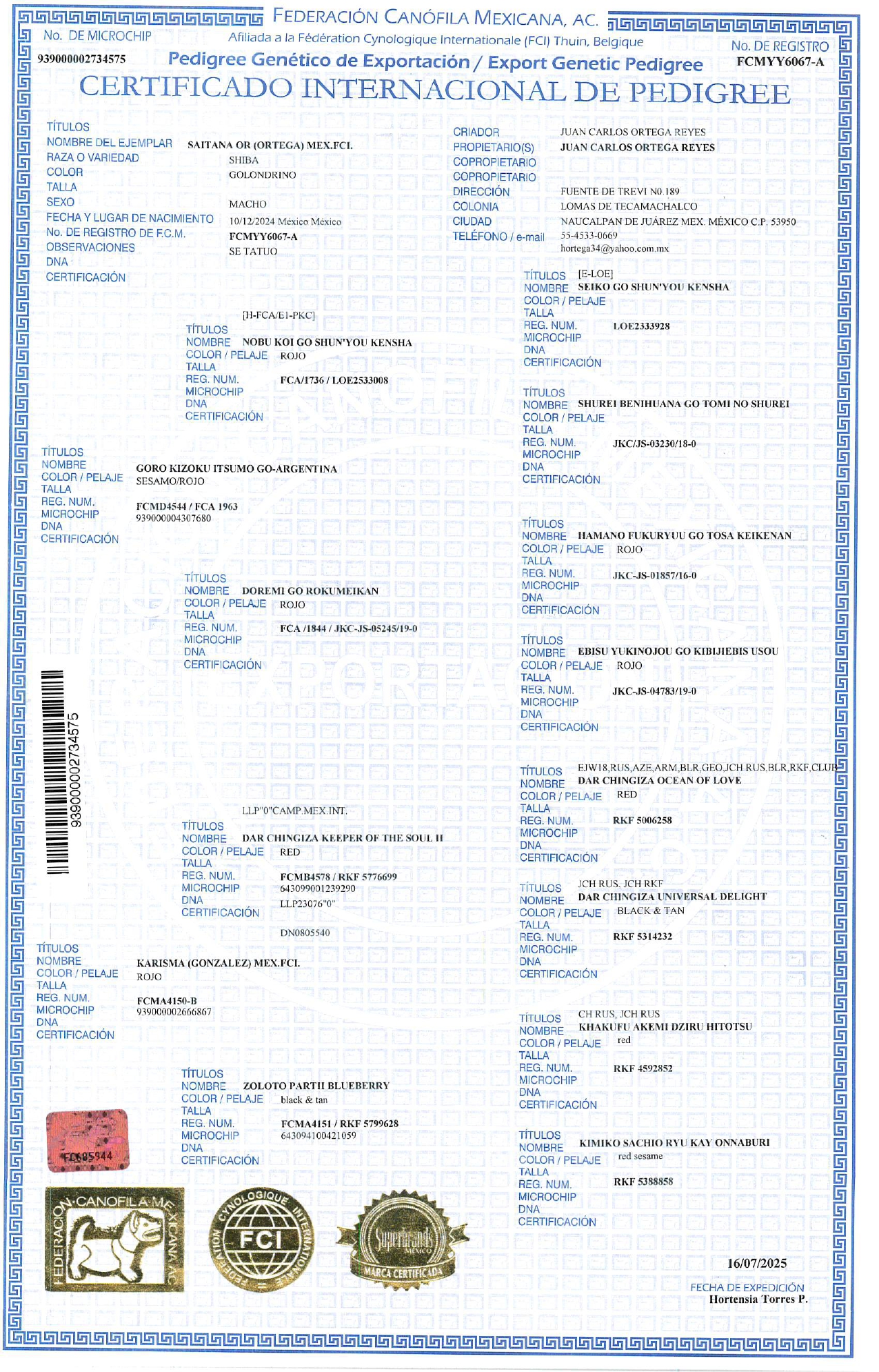 Aquí encontrarás todo sobre el cachorro Saitana or, su Pedigree y sus características únicas.