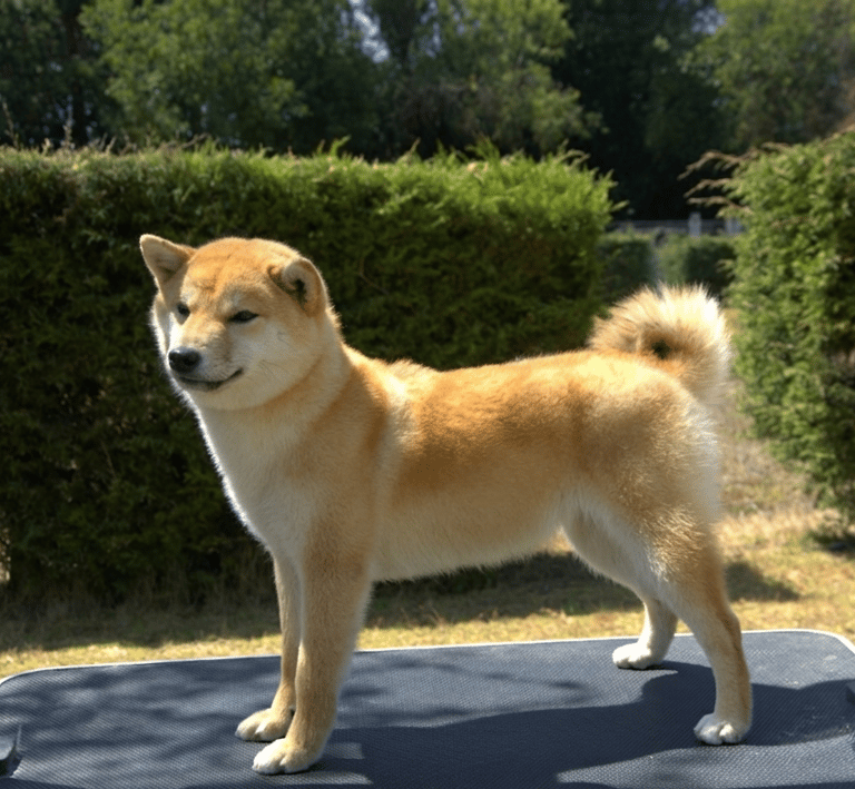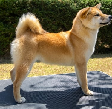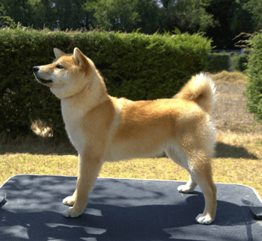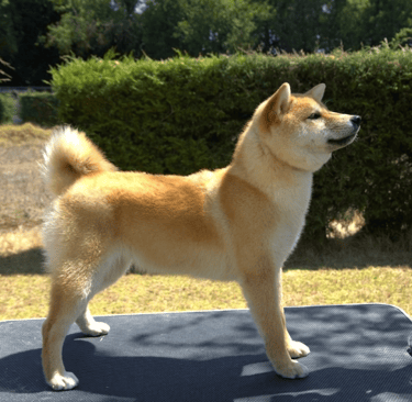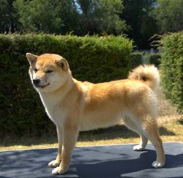 Sakura es una hembra que expresa tipicidad racial, con un equilibrio general entre cuerpo, cabeza y movimiento, acorde al estándar del Shiba.