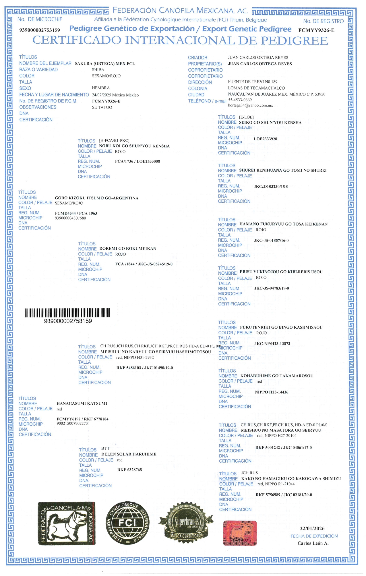 Aquí encontrarás todo sobre el cachorro Sakura, su Pedigree y sus características únicas.