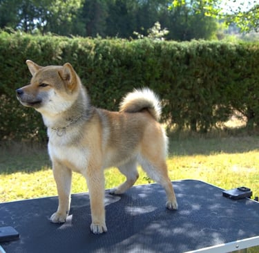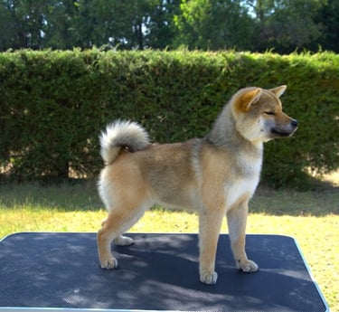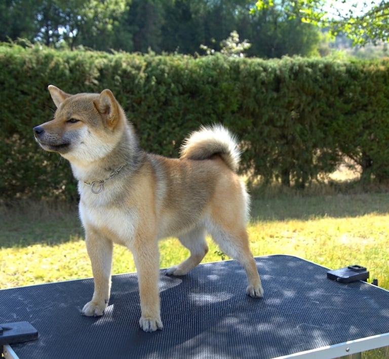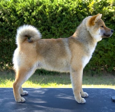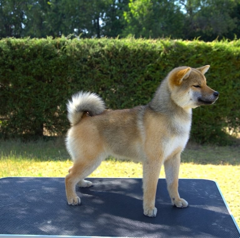 Soro es un ejemplar que destaca por su equilibrio general y correcta proporción, mostrando un conjunto armonioso y bien estructurado, fiel al tipo funcional del Shiba.