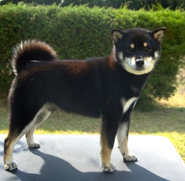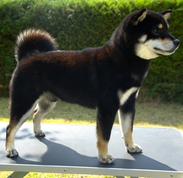 Holo es una hembra que destaca por su elegancia natural y equilibrio estructural, proyectando una silueta femenina bien definida, acorde a la tipicidad del Shiba Inu.