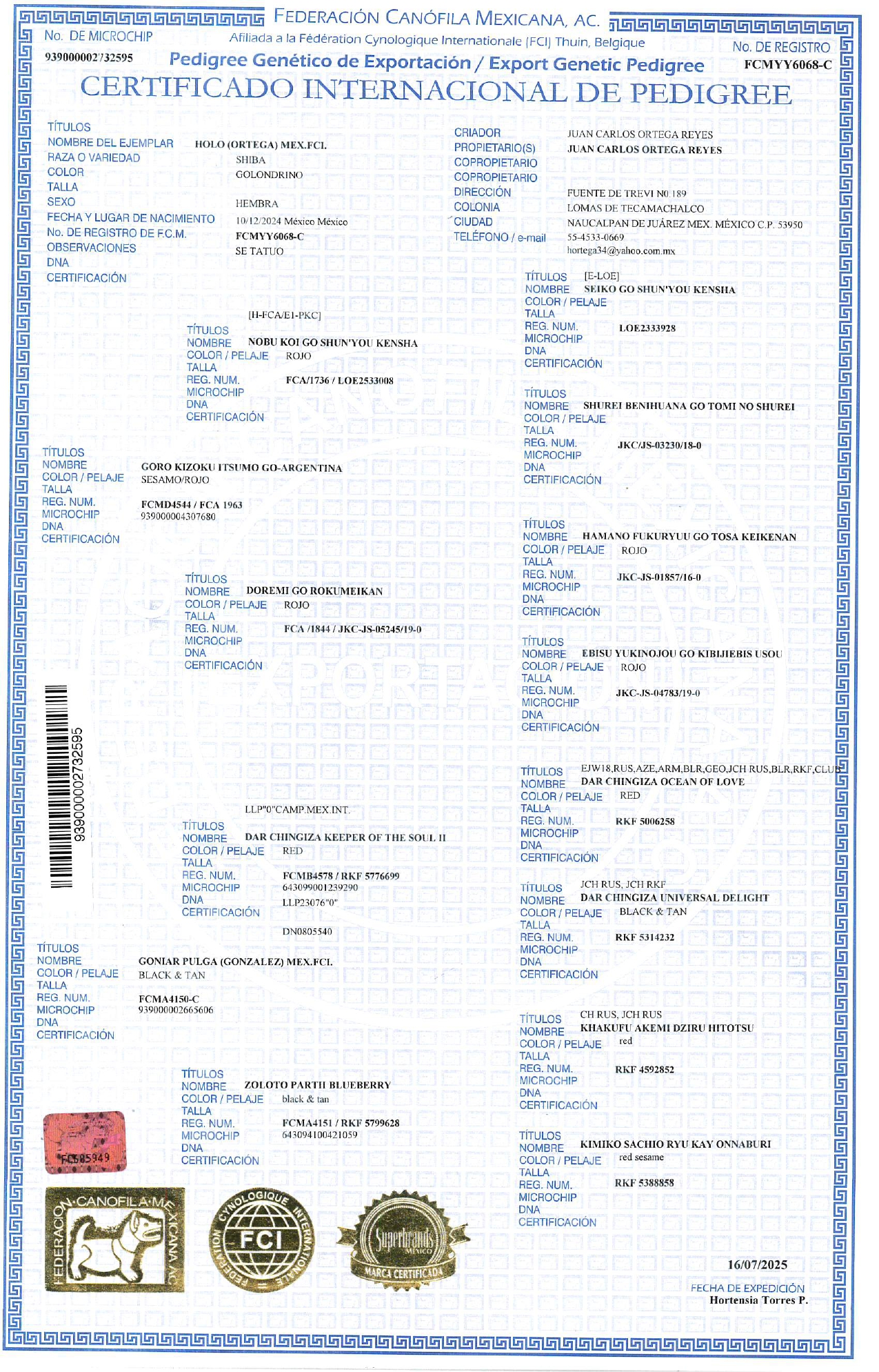 Aquí encontrarás todo sobre el cachorro Holo, su Pedigree y sus características únicas.